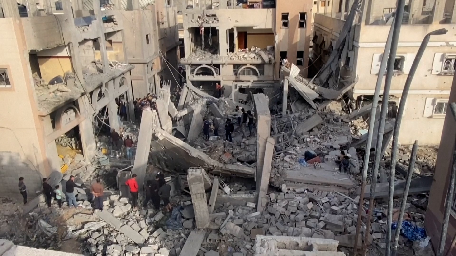 “Let them drop nuclear weapons on us so we can die all at once.” At least eleven Palestinians were killed in an Israeli attack on a residential building, as a result of a fire caused by the strikes. Neighbours of the victims in Khan Younis expressed their distress.