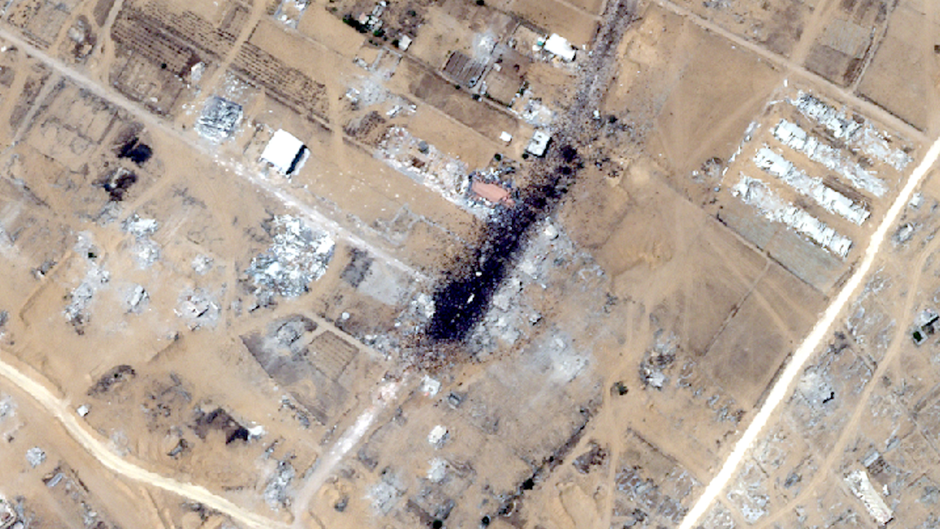 Satellites orbiting in space recorded the moment when tens of thousands of Palestinians surged toward aid trucks that had entered southern Gaza, in a desperate attempt to get aid.