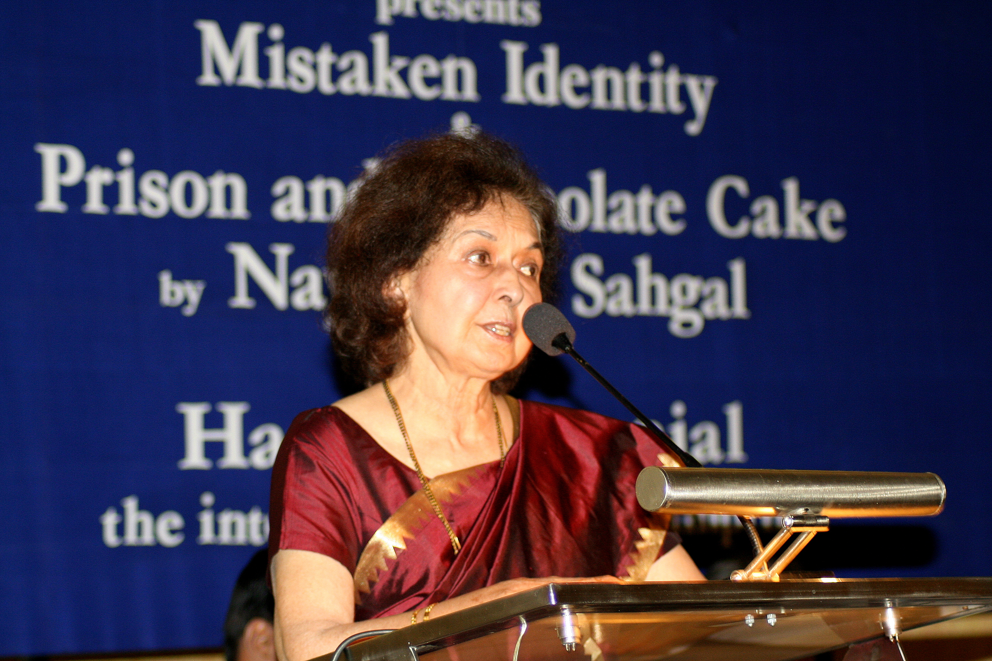 Nayantara Sahgal speaks at event in New Delhi, India on November 30, 2007. (RAMESH LALWANI/WIKIMEDIA COMMONS)